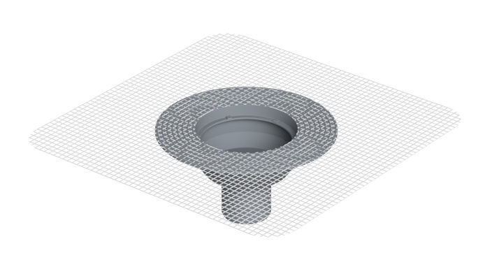Fileli alt gövde Tesisat yönüne göre ayarlanarak montaj kolaylığı sağlar. Üst gövde ile bütünleşmiş file yalıtım eteği, eğim şapının üzerine uygulanan sürme yalıtım katmanları arasına yerleştirilir. Bu uygulama ile yalıtım malzemesi ile süzgecin bütünleşmesi sağlanmış olur.